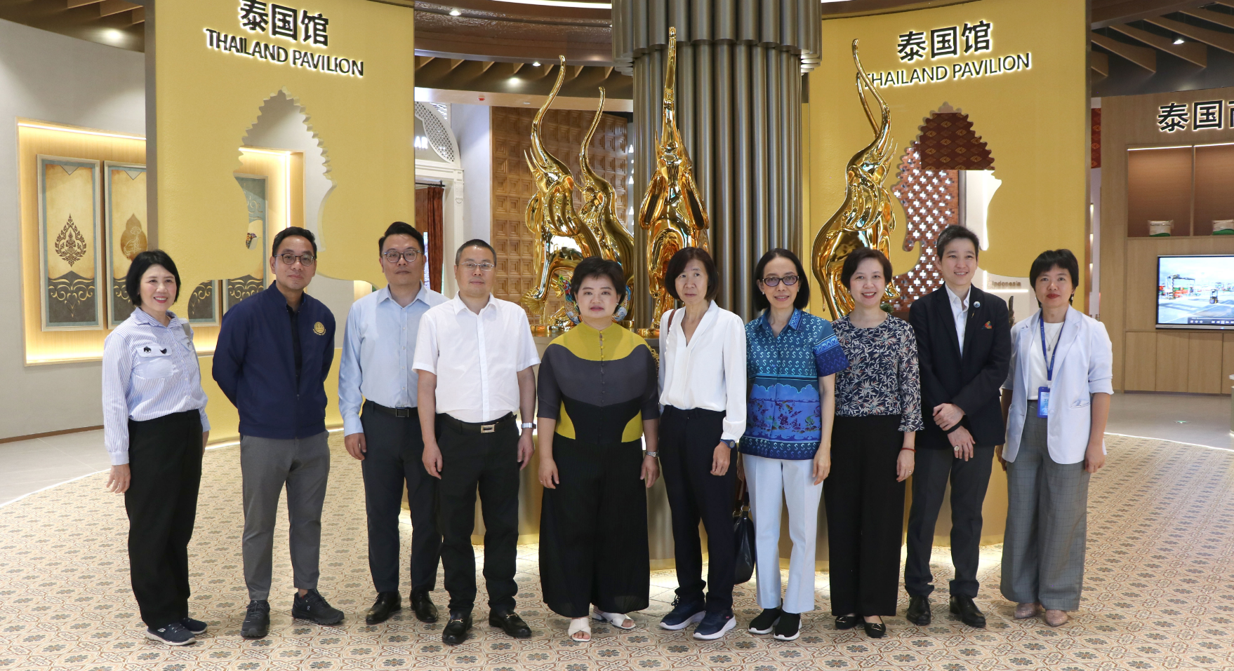婉娜蓬·戈杜塔等泰國(guó)商業(yè)部巡視員、中國(guó)—東盟特色商品匯聚中心副總經(jīng)理盧春梅等陪同考察。