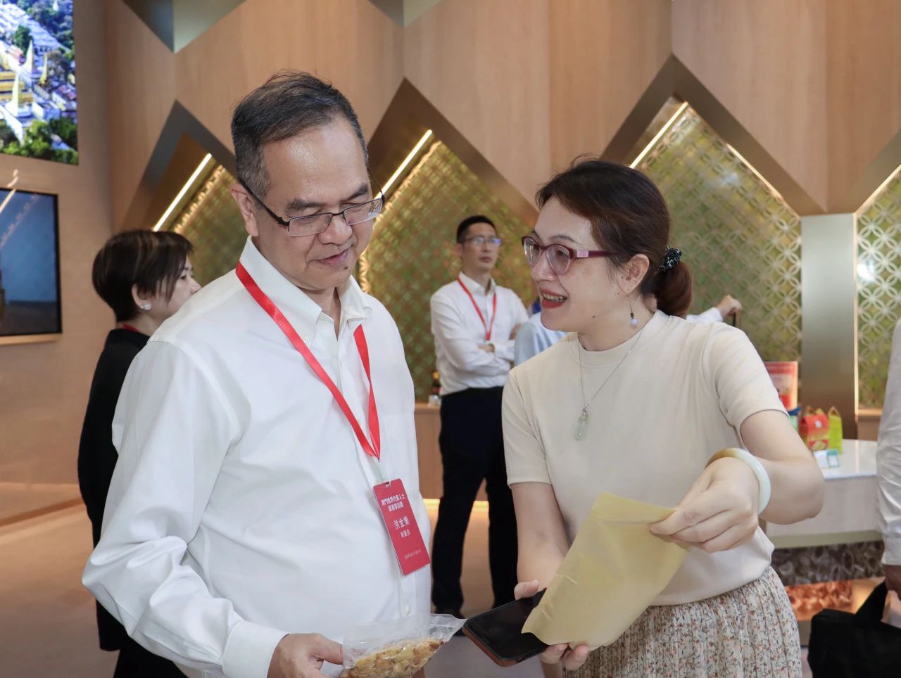 在匯聚中心,參訪團從東盟國家主題館參觀到RCEP其他區(qū)域國家主題館,一路興致盎然,熱情咨詢項目的相關信息并不斷合影留念。他們紛紛表示,匯聚中心各館融合了各國當?shù)靥厣ㄖ懊袼罪L情元素,巧妙將各國特色產品進行突出展示與銷售,這樣的方式十分特別,對商家與消費者來說是一種創(chuàng)新的體驗。其中,來自澳門各東盟國家商會的會長們,對各自國家的主題展館尤其感興趣,當即就商品入駐流程及具體事宜與匯聚中心團隊進行詳細對接,現(xiàn)場氣氛熱烈!