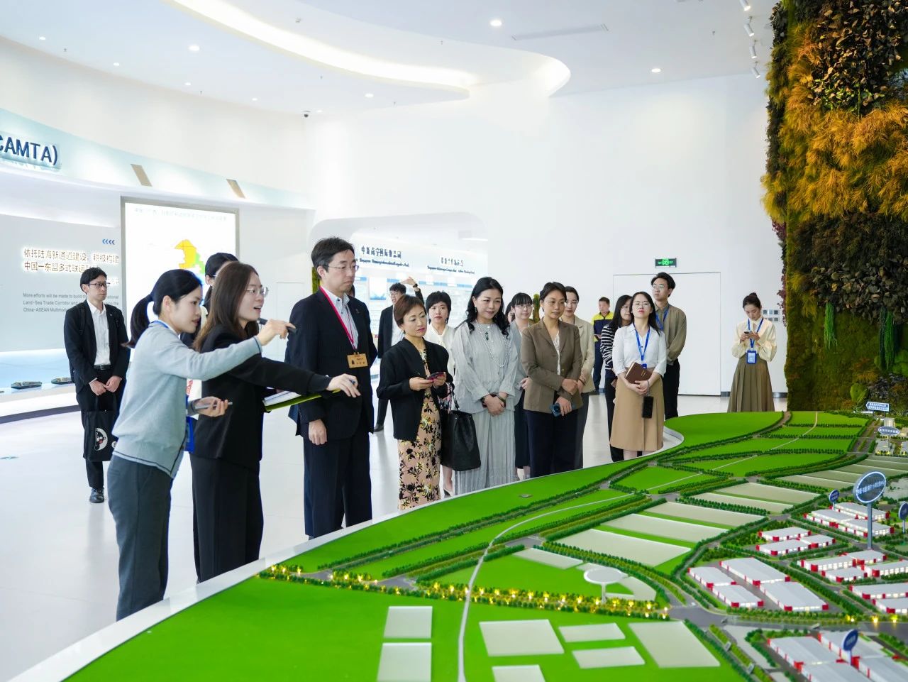 在中新物流園展廳,代表團(tuán)詳細(xì)了解園區(qū)的整體規(guī)劃和發(fā)展情況,對(duì)國(guó)際陸海貿(mào)易新通道的戰(zhàn)略價(jià)值以及廣西作為關(guān)鍵節(jié)點(diǎn)的樞紐作用有了更深刻的理解。代表團(tuán)對(duì)于園區(qū)選址于廣西南寧,既把握了中國(guó)西部大開發(fā)的戰(zhàn)略機(jī)遇,又充分發(fā)揮了廣西面向東盟的區(qū)位優(yōu)勢(shì),實(shí)現(xiàn)多方共贏發(fā)展格局表示了贊賞。