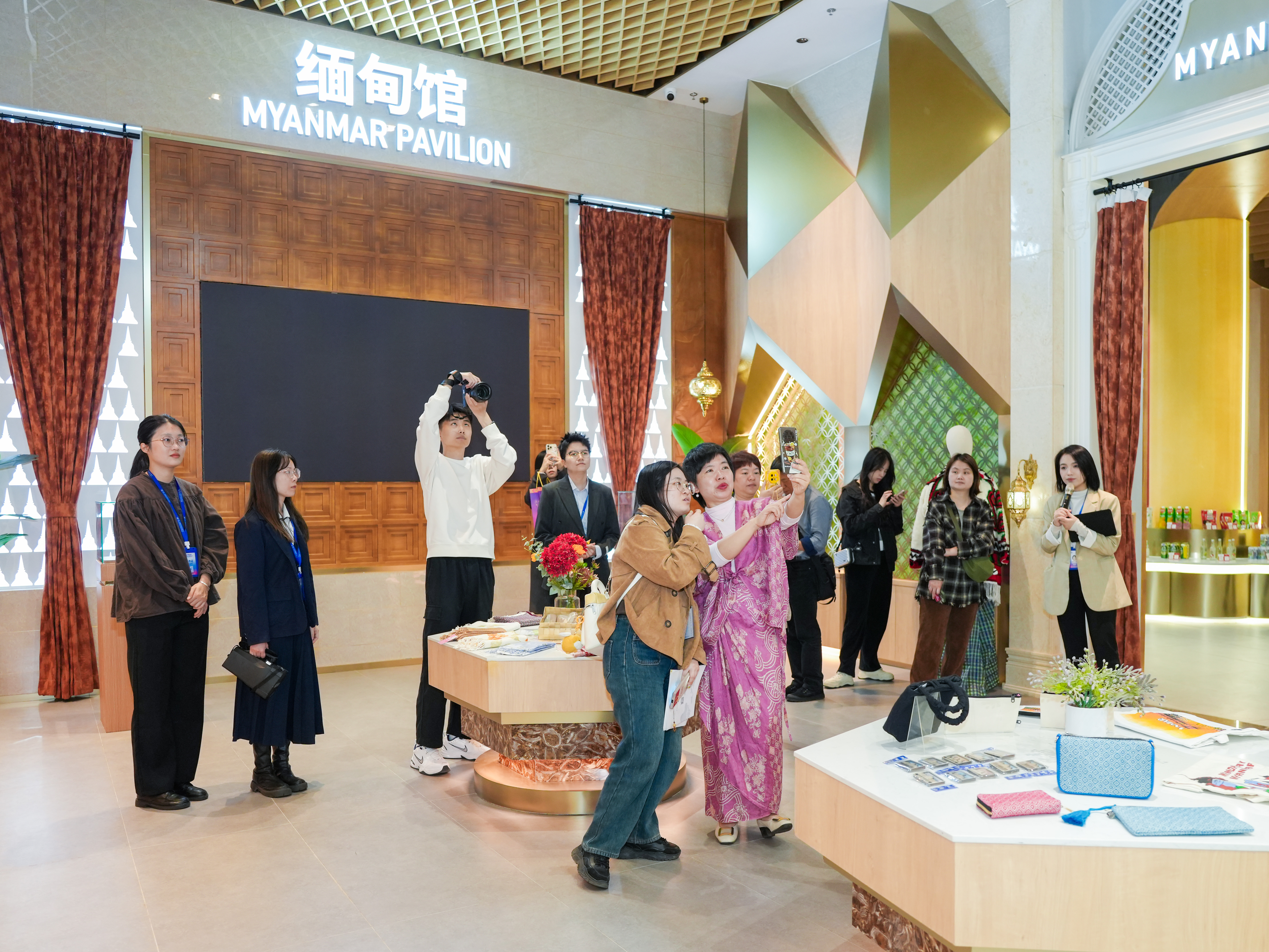 “每一處設(shè)計(jì)都融合了各國(guó)特色民俗文化,仿佛穿越到東盟各國(guó)的市集街巷。”一位記者贊嘆道。