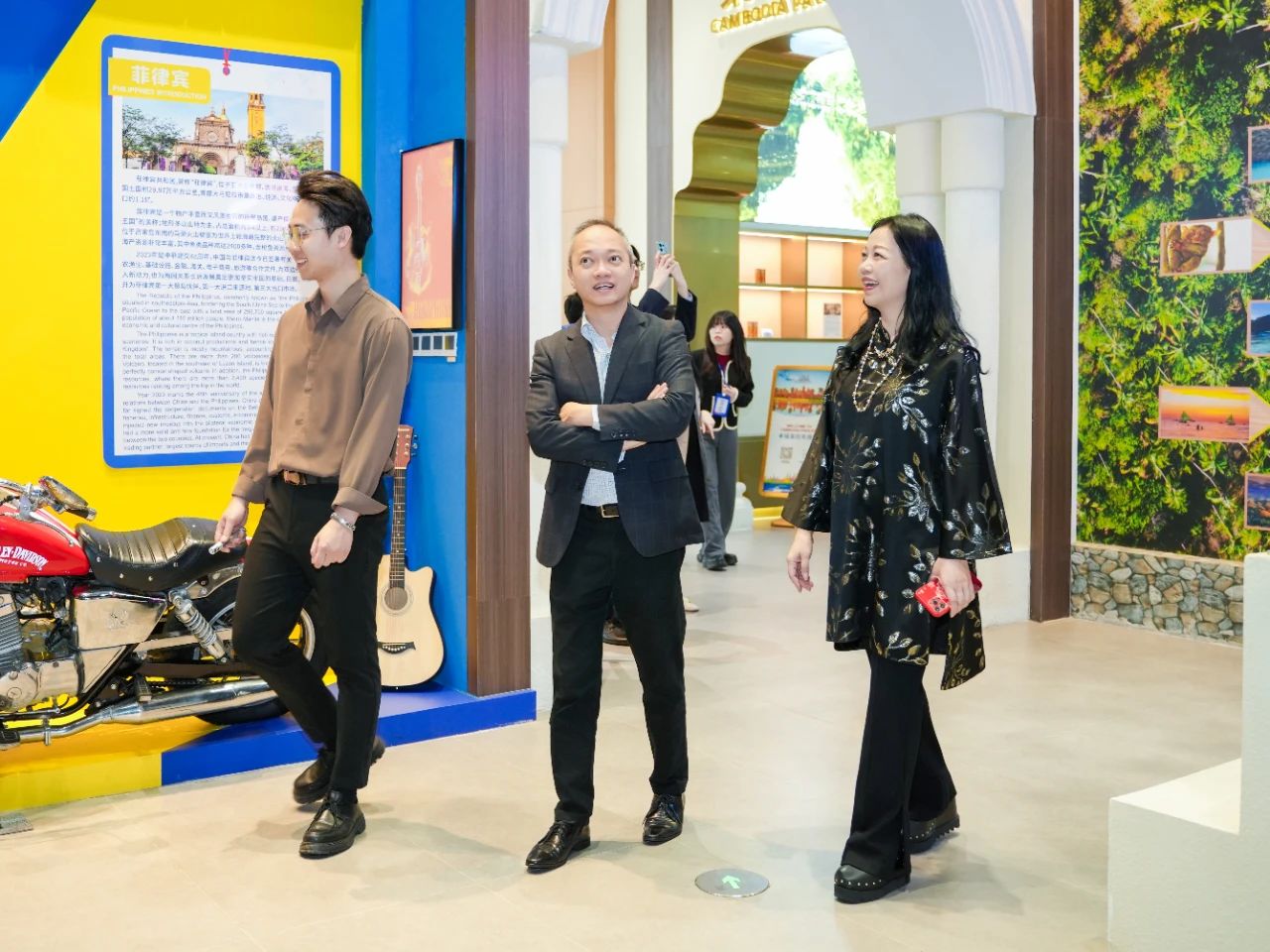 福安來商務(wù)領(lǐng)事表示,一走進(jìn)匯聚中心,迎面而來的熟悉場景令他不禁想起首次到訪的情景。他指出,匯聚中心充分結(jié)合RCEP區(qū)域國家乃至“一帶一路”沿線重要國家的人文風(fēng)俗元素,完美融入每一個(gè)主題展館中,使得各館各具特色,令人印象深刻。尤其是菲律賓館,里面壯觀的沙丁魚風(fēng)暴、搖曳的椰林沙灘、原生態(tài)茅草屋與歡快的吉他,以及獨(dú)具菲律賓本國特色的窗戶樣式等,都精準(zhǔn)還原了當(dāng)?shù)氐娘L(fēng)貌,讓他倍感親切,仿若置身家鄉(xiāng)。他相信很多到訪匯聚中心的嘉賓都會(huì)與他有著同樣的感受——這里的美好一見傾心、再見難忘,如陳釀般令人回味悠長。