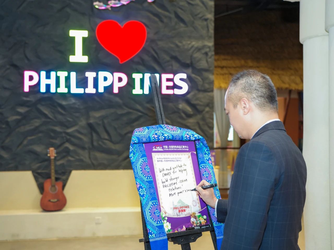 福安來商務(wù)領(lǐng)事在菲律賓館寫下了對(duì)匯聚中心的寄語,盛贊匯聚中心搭建的獨(dú)特商貿(mào)平臺(tái),在助力構(gòu)建更緊密的菲中關(guān)系上做出的貢獻(xiàn),并祝項(xiàng)目發(fā)展得越來越好。他表示將持續(xù)關(guān)注項(xiàng)目發(fā)展,期待一年至少三次實(shí)地考察,深化雙方務(wù)實(shí)合作,共創(chuàng)美好未來。