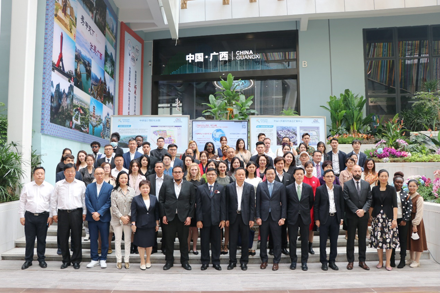 2022年10月16日至22日,中國共產(chǎn)黨第二十次全國代表大會勝利召開。為宣講大會的劃時代意義、重大成果和深遠影響,同時增進各國駐南寧總領事館官員、外籍專家、留學生、港澳人士代表對東盟國家投資企業(yè)及在桂重點項目高質(zhì)量發(fā)展情況的了解,廣西壯族自治區(qū)外事辦公室(以下簡稱“自治區(qū)外事辦”)和廣西南寧市外事辦公室(以下簡稱“南寧市外事辦”)于11月18日共同組織自治區(qū)外事辦、南寧市委、南寧市外事辦、東盟國家駐南寧總領事館、港澳及僑胞代表等一行約90人到中國—東盟特色商品匯聚中心(以下簡稱“匯聚中心”)考察。廣西新中產(chǎn)業(yè)投資有限公司/中國—東盟特色商品匯聚中心董事長趙海燕會見了考察團一行。廣西新中產(chǎn)業(yè)投資有限公司/中國—東盟特色商品匯聚中心總經(jīng)理施國維陪同考察。