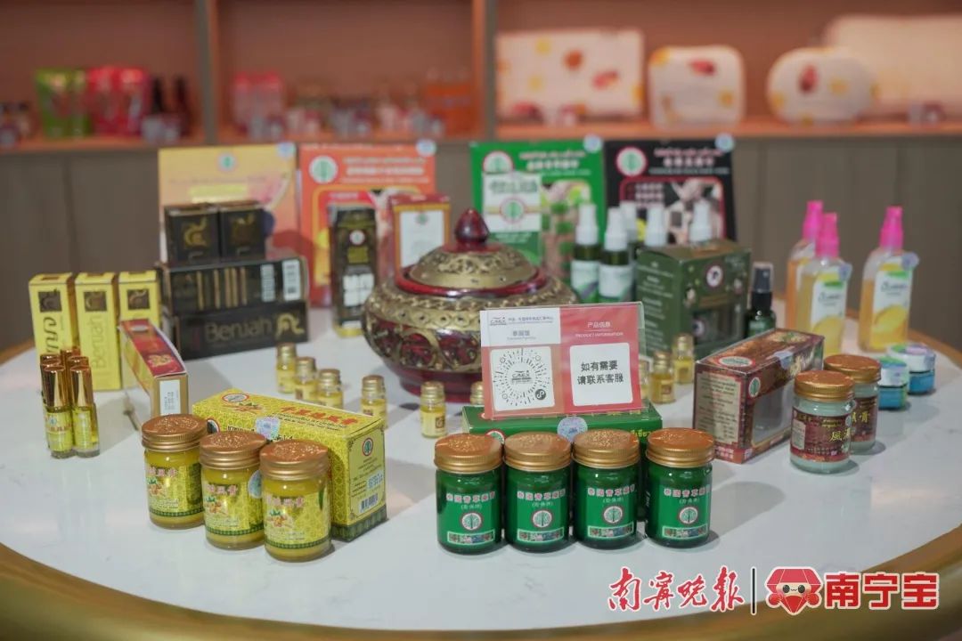 匯聚中心于2022年9月14日正式啟動試運營,目前已完成線下17個主題展館的建設,入駐展品種類超3500種。泰國乳膠枕、越南咖啡、日本電器……在各個展館里,市民可以掃碼通過線上平臺下單,購買來自各國的特色產品。在中國廣西館,記者看到了許多廣西人熟悉的廣西老字號產品,如雙錢牌龜苓膏、田七牙膏等,還有暢銷海內外的柳州螺螄粉、梧州六堡茶等。